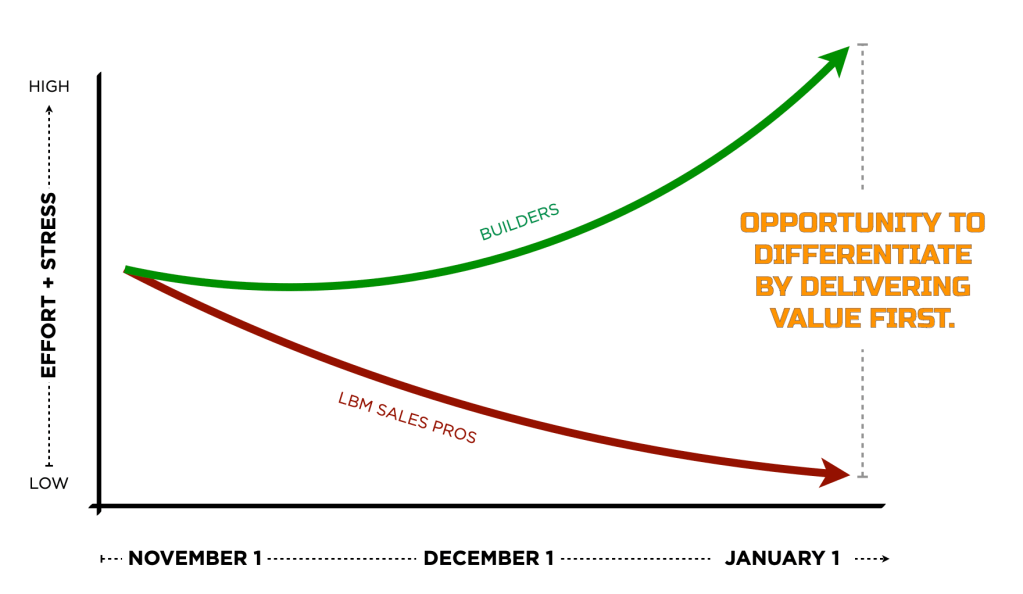 But too many LBM sales pros take their foot off the gas at the exact moment their customers are pushing hardest. Between Thanksgiving and Christmas, reps begin coasting—consciously or otherwise—when their best customers are working the longest hours of the year.