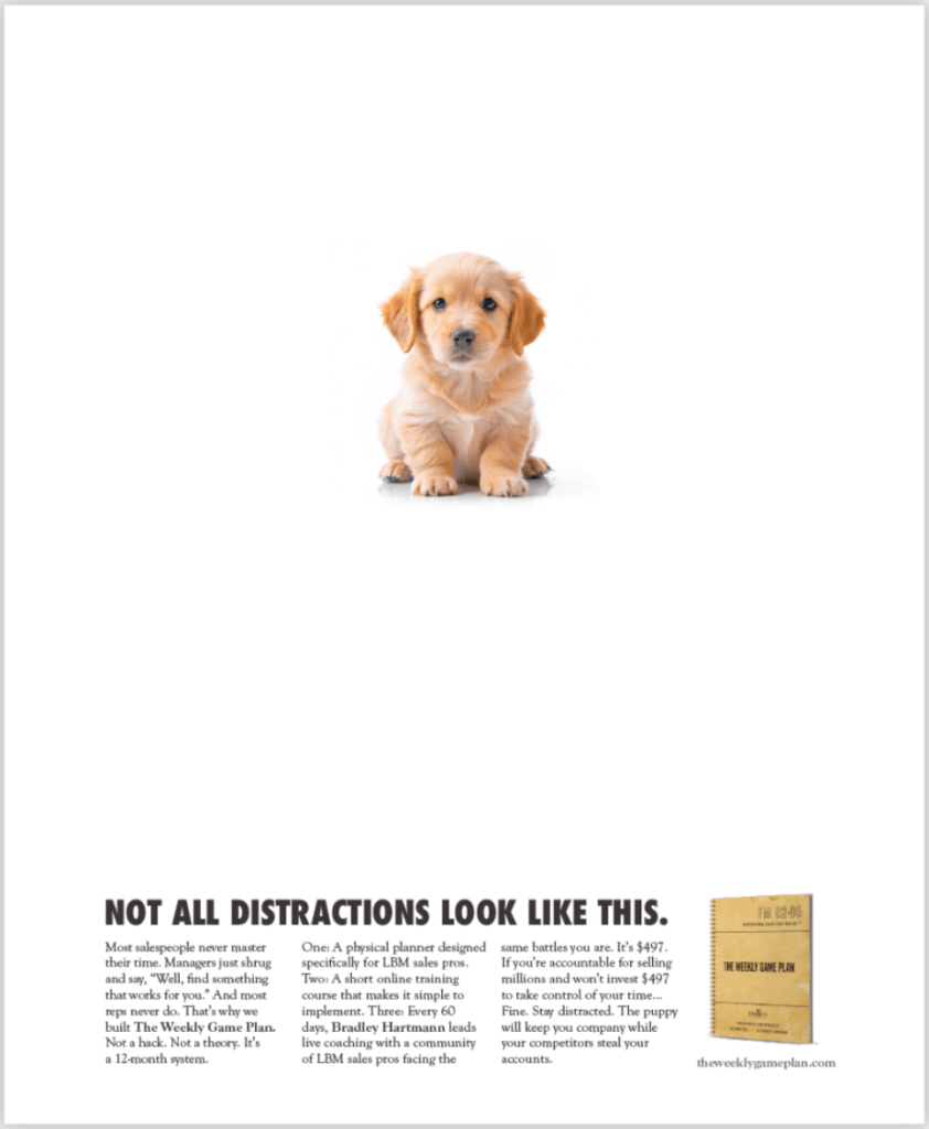 Take control of your time with The Weekly Game Plan—a 12-month system built for LBM sales pros.