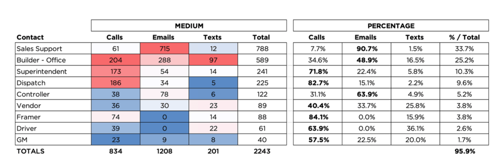 Notably, more than 55 percent of his communication was internal with his inside sales team—an area he’s now investigating to reclaim more customer-facing time.