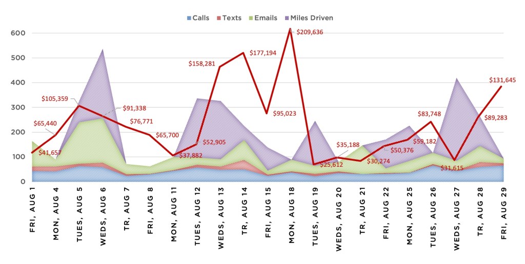 During the month, we tracked every call, email, text, mile driven, and customer interaction. Every Friday, we interviewed him again to understand why he made the choices he did.